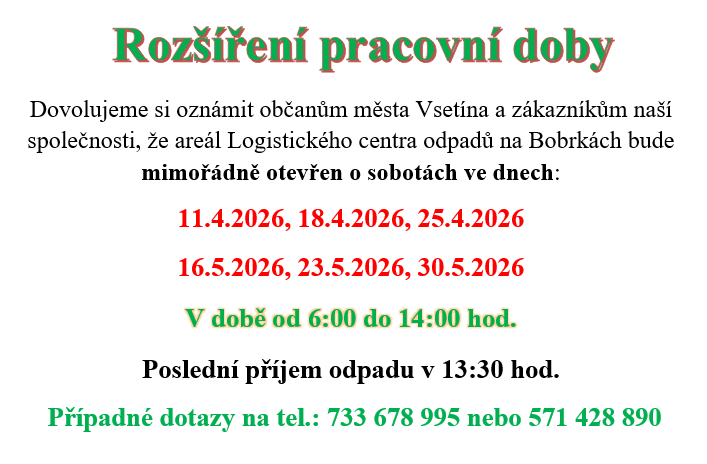- Poslední příjem odpadu 17:30